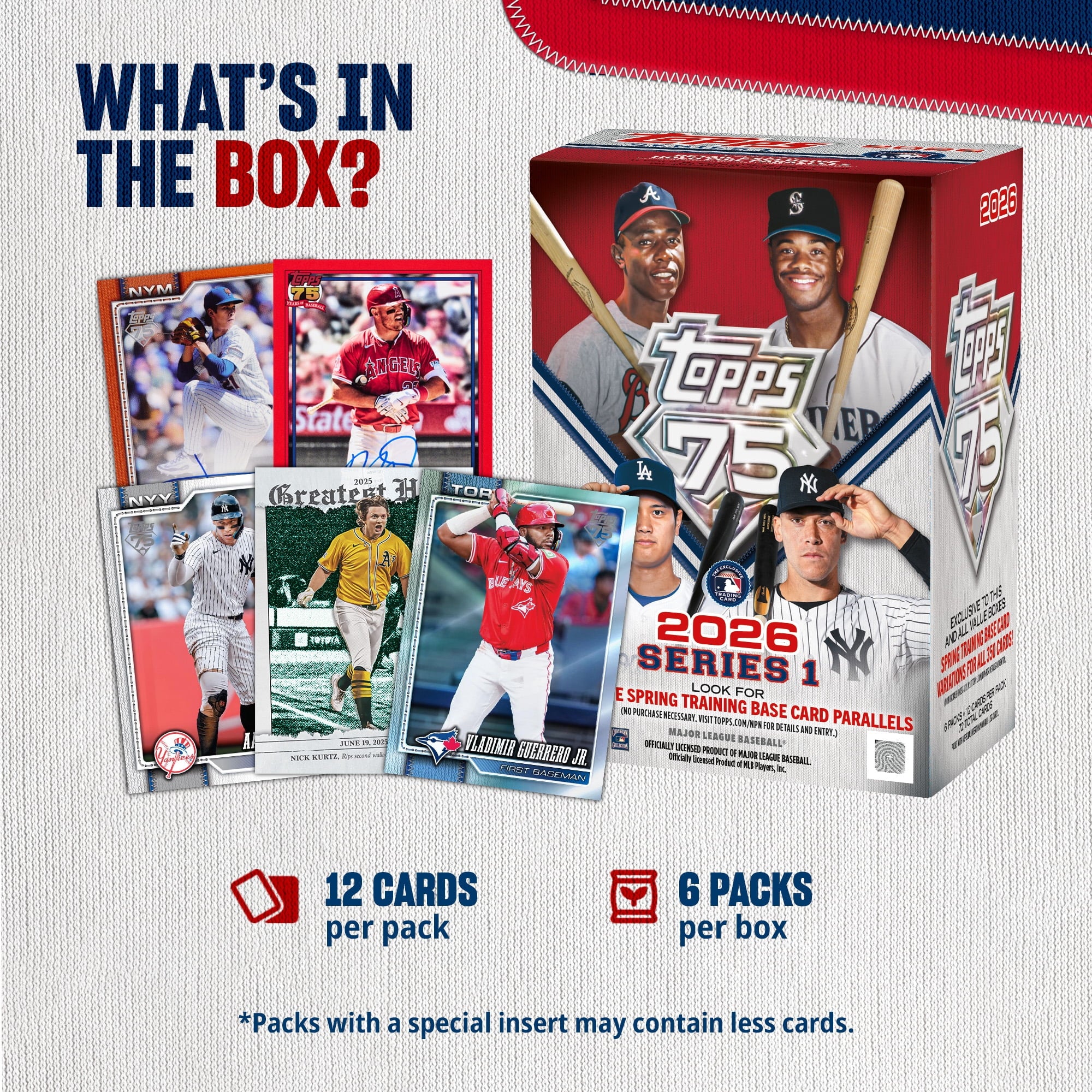2026 Topps Series 1 Baseball kicks off a year-long celebration of the 75th Anniversary of Topps Baseball, honoring the most iconic name in trading cards. For 75 years, Topps Baseball has defined the Hobby by capturing the game’s greatest players and moments, generation after generation.