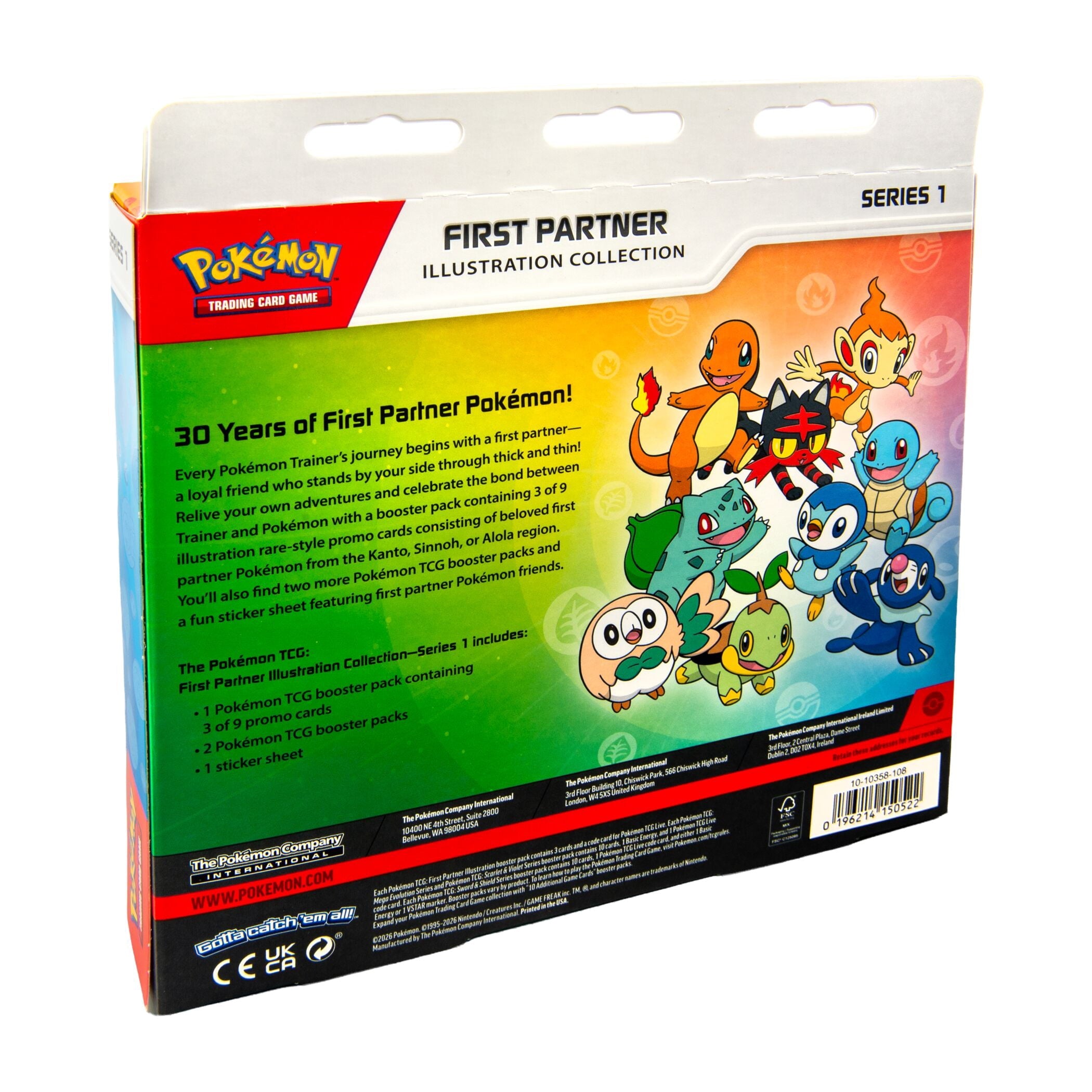 Every Pokémon Trainer’s journey begins with a first partner—a loyal friend who stands by your side through thick and thin! Relive some of your favorite adventures and celebrate the bond between Trainer and Pokémon with a booster pack containing three of nine illustration rare-style promo cards consisting of beloved first partner Pokémon from the Kanto, Sinnoh, or Alola region. You’ll also find two more Pokémon TCG booster packs and a fun sticker sheet featuring first partner Pokémon friends.