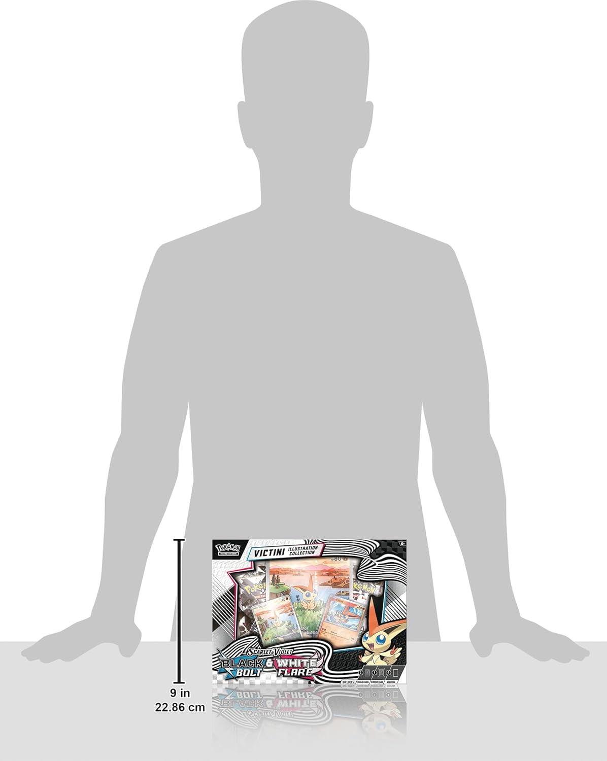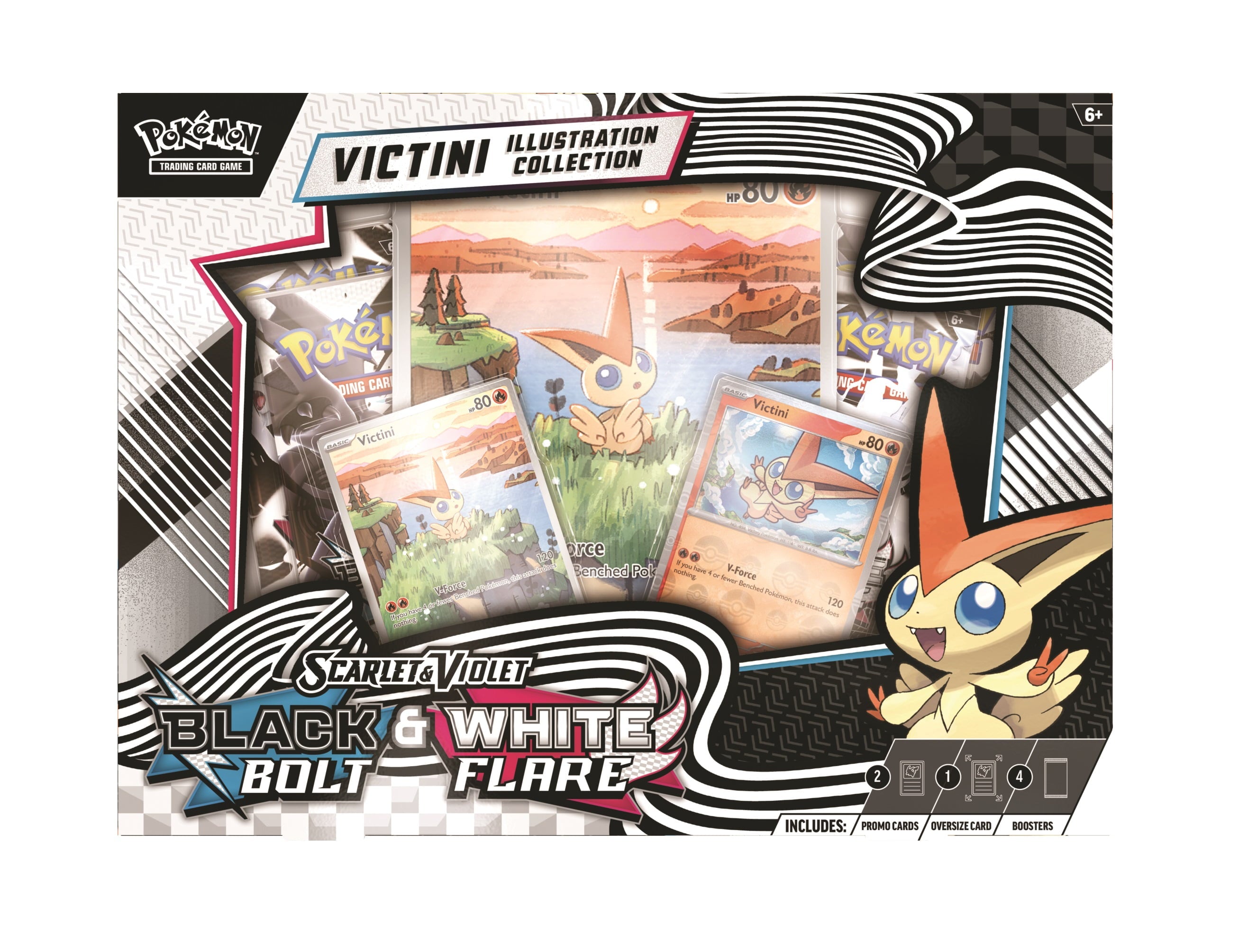 Borrow a Mythical Pokémon’s Power! The Mythical Pokémon Victini is said to create infinite energy that it can share with its friends, and now you can team up with it in your own Pokémon TCG decks! In this collection, you get an illustration rare-style foil promo card and a premium parallel foil card featuring Victini, along with an oversize card for display. You’ll find even more Pokémon from the Unova region inside the included booster packs from the special Scarlet & Violet—Black Bolt and Scarlet & Violet—White Flare expansions.